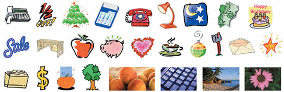 of design possibilities. Choose from clip art, photos, borders,